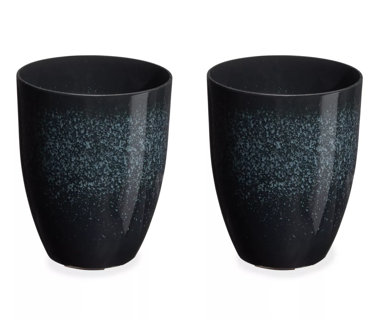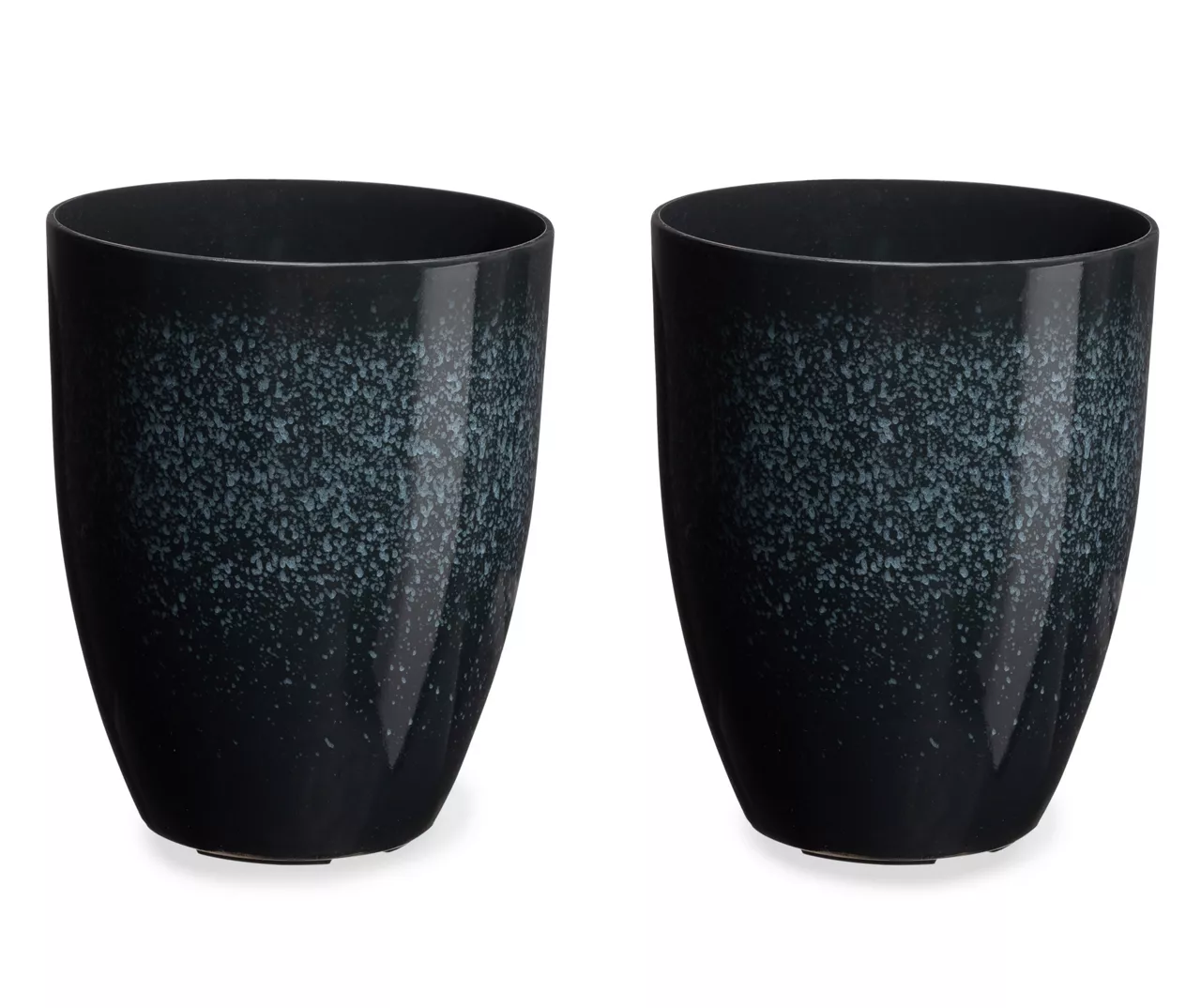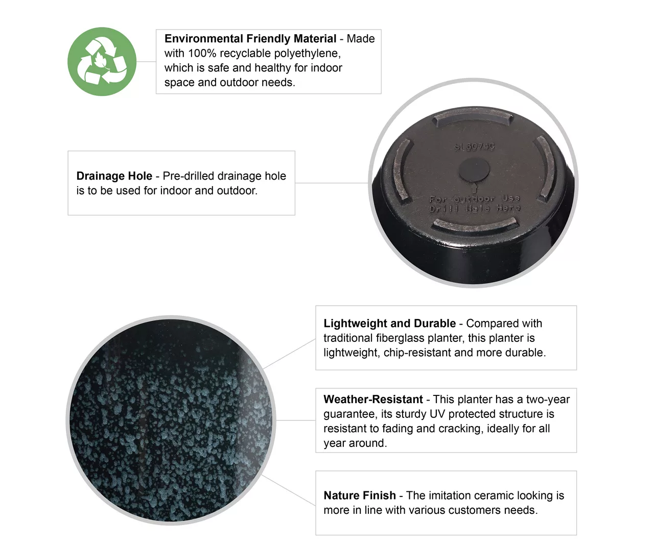 Add stunning design to your planted beauties using this set of two planters. They each are made of 100% recyclable polyethylene, which is safe and healthy for indoor space and outdoor needs. The imitation ceramic look creates interest as these lightweight and durable planters resist fading and cracking from UV protected constructions.