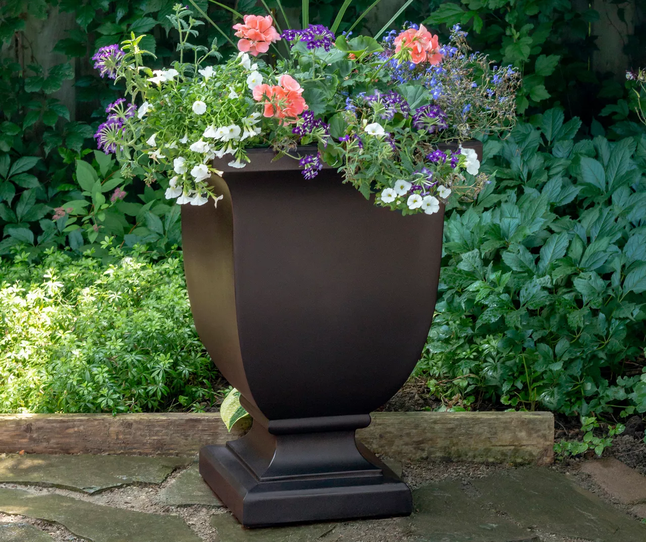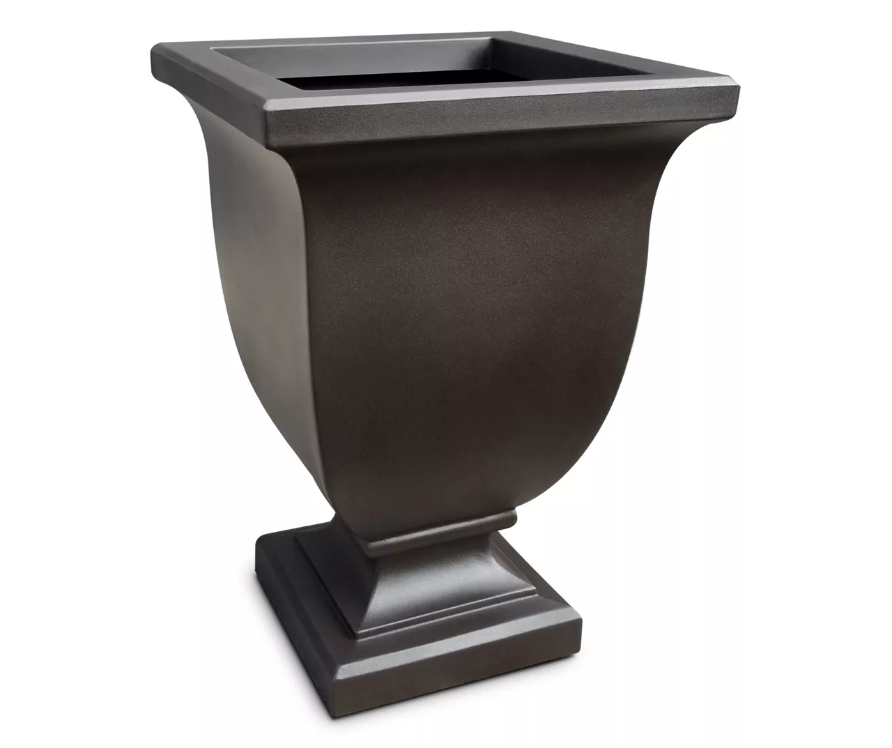 Contemporary with the traditional look of an urn without the weight. The Augusta planter is the perfect accent for any outdoor space. Featuring sleek and clean lines on a tapered design, its beautiful espresso finish allows you to effortlessly pair it with your patio, deck or porch.