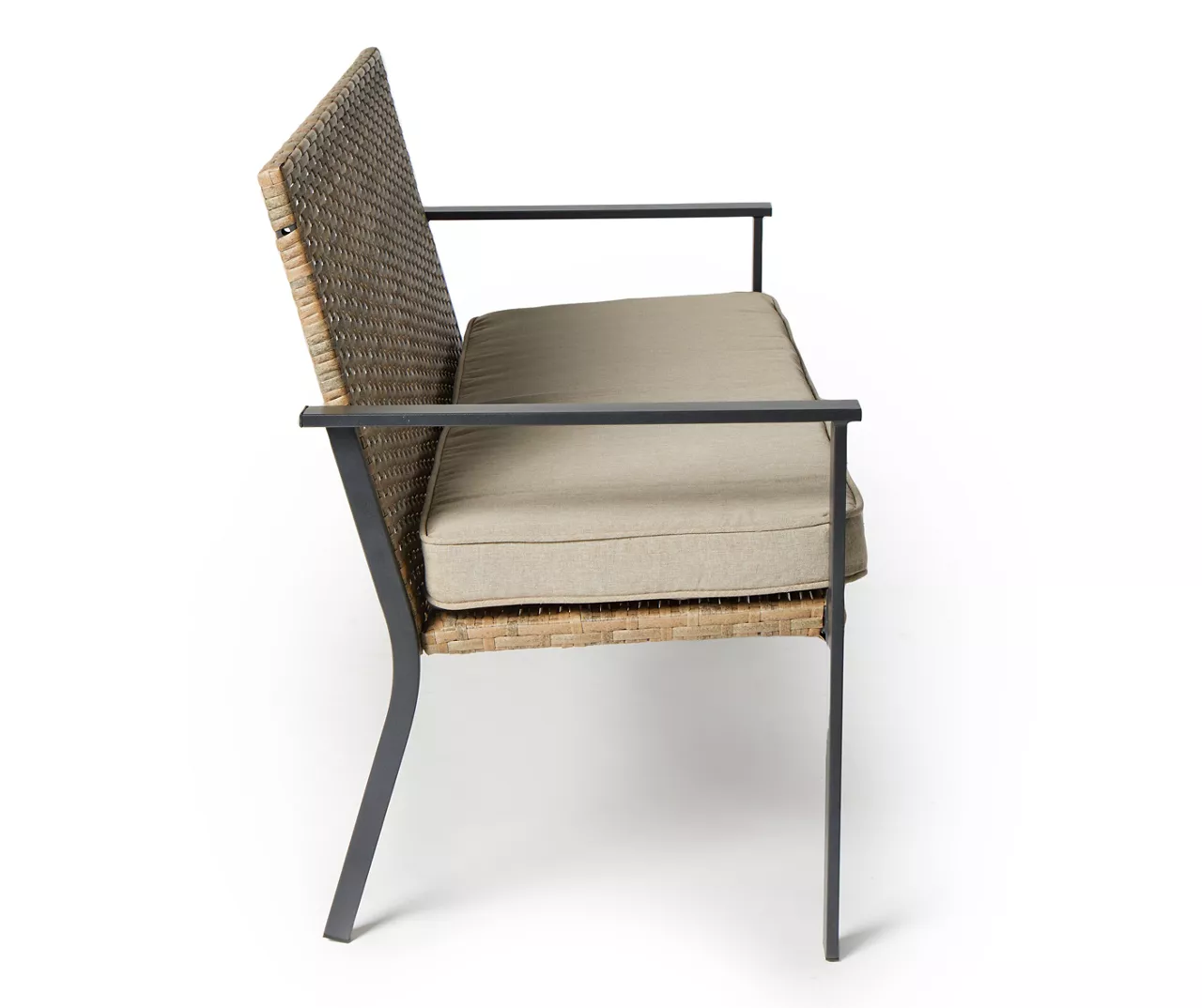 The Yorktown bench from Broyhill brings cozy seating to your favorite outdoor spot. The classic profile features a powder-coated galvanize steel frame for long-lasting beauty as handwoven all-weather wicker covers the seat base and backrest. Complete with an oversize deep seating cushion made from fade-resistant polyester, this bench is a fantastic addition to a patio, deck or backyard.