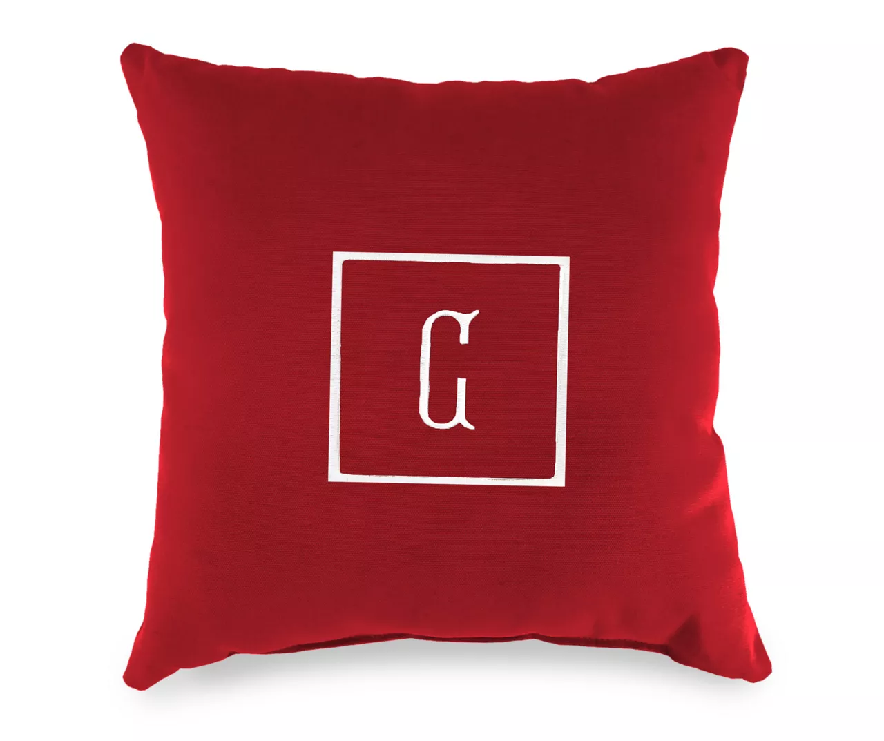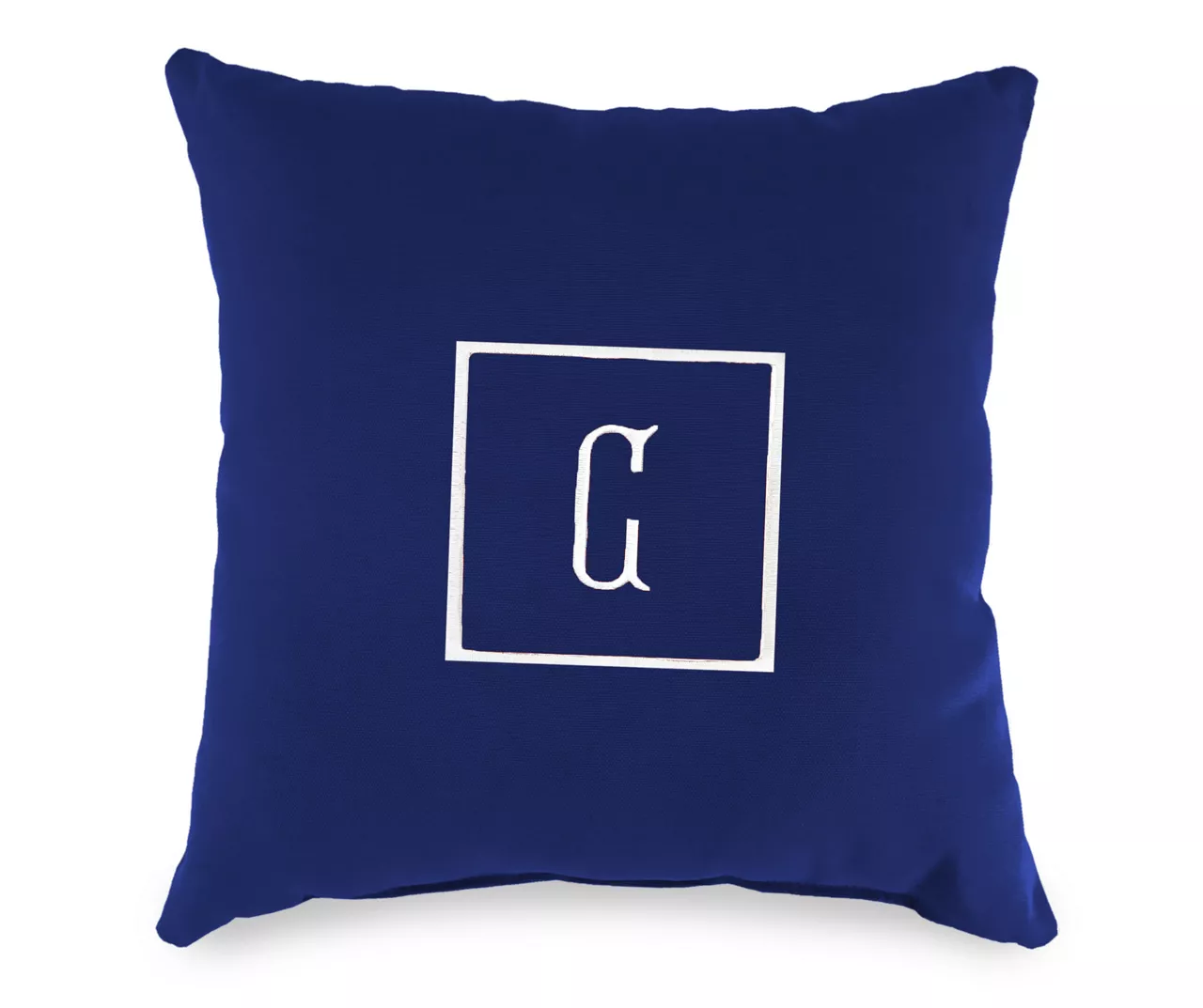 - Embroidered center letter with square edging