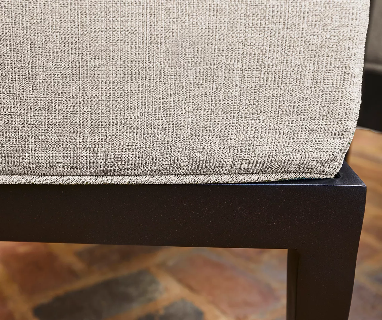 - Durable powder-coated steel frames with deep, curved armrests and tapering legs