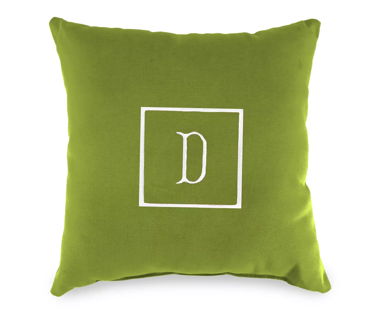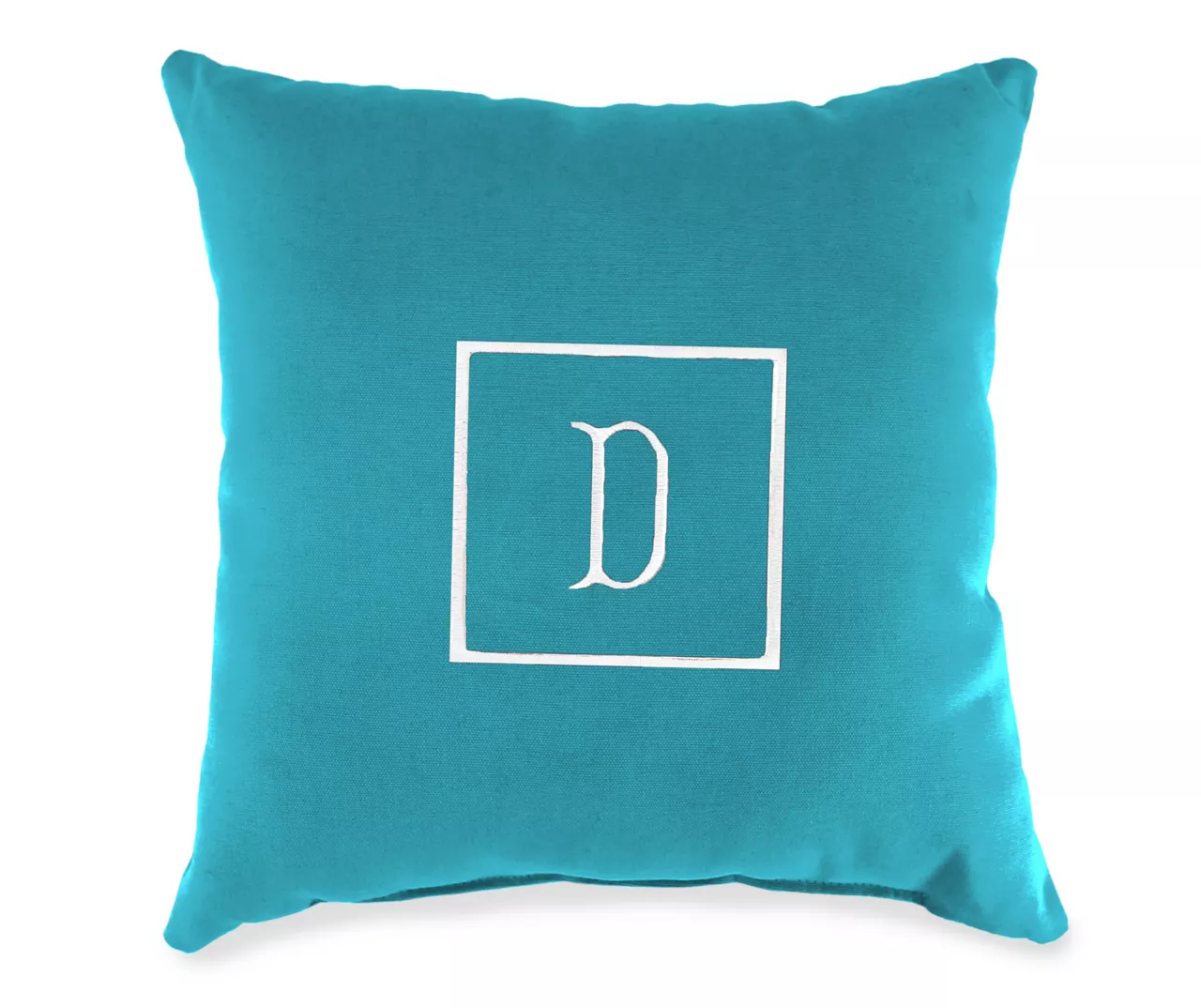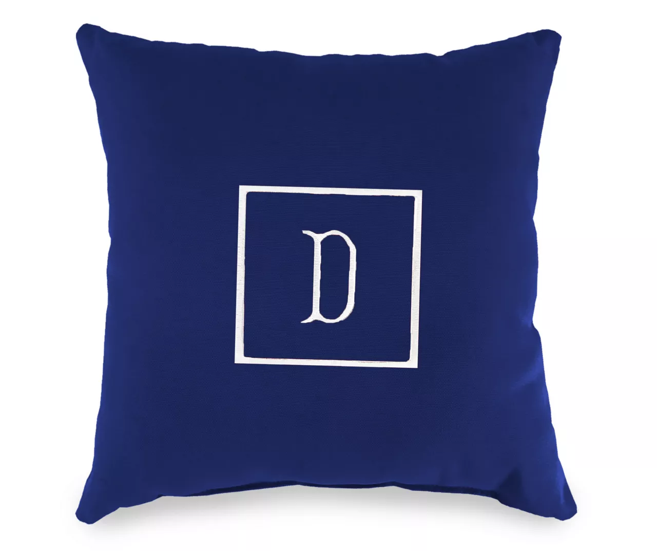 - Embroidered center letter with square edging