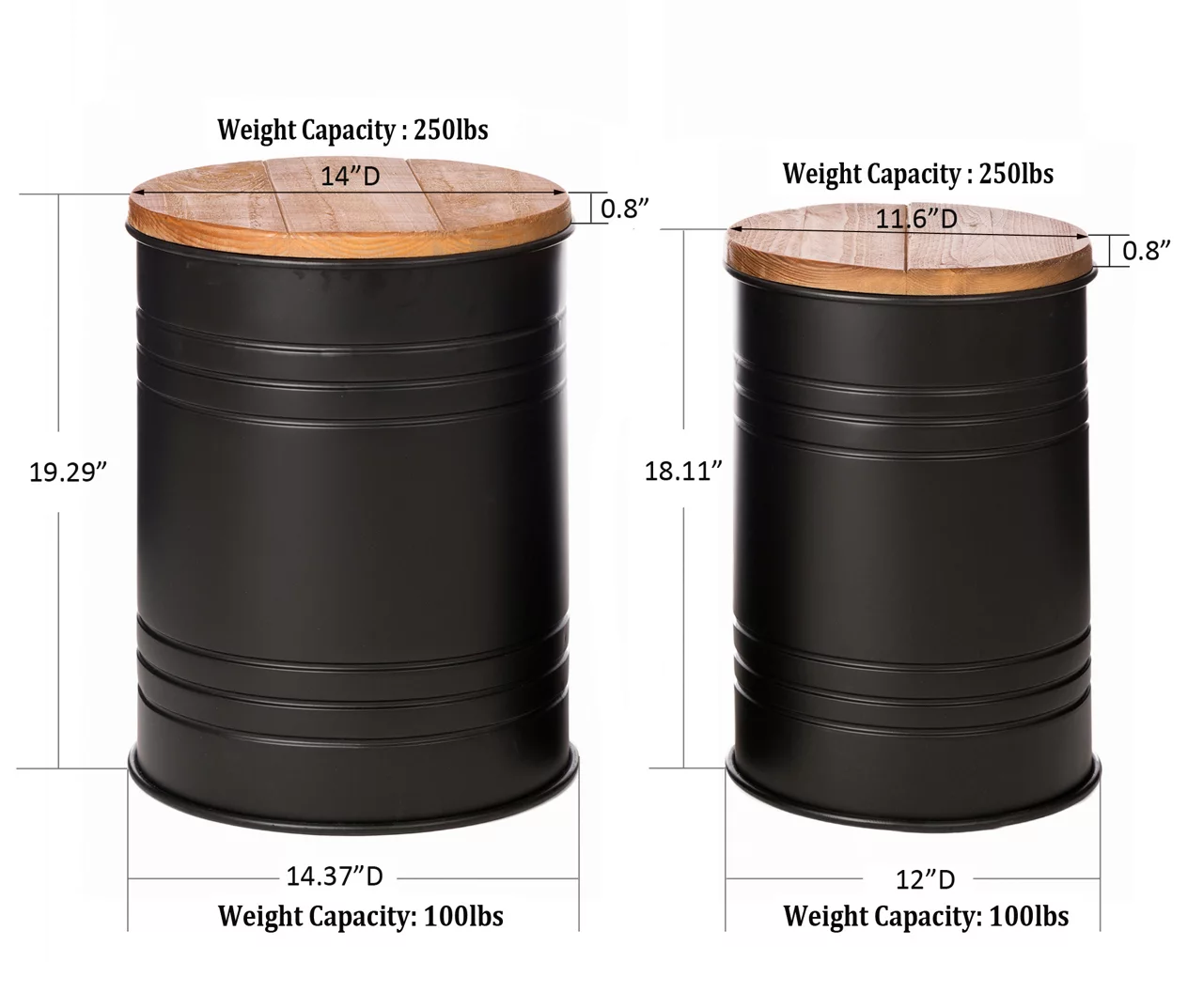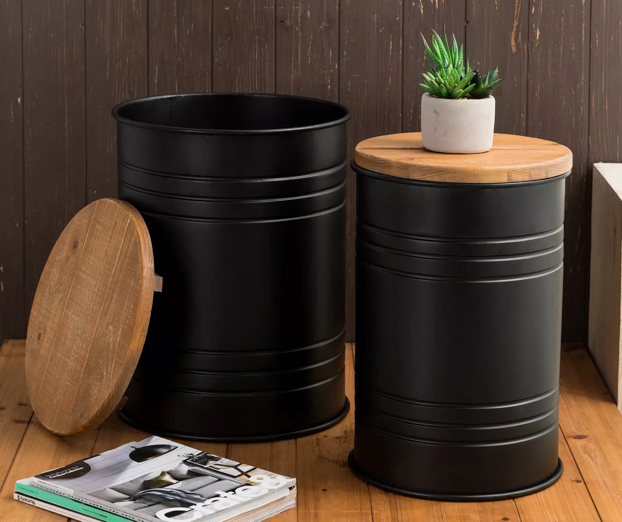 Made from high-density wood and iron, these black barrels double as a side table for display and extra seating for when guests are over. Remove their pine wood tops to reveal a hallow interior for storing blankets, pillows and other home essentials. Place them in the living room, den or bedroom for a touch of rustic, country charm. Water resistant design means they’re ideal for outdoor use too.