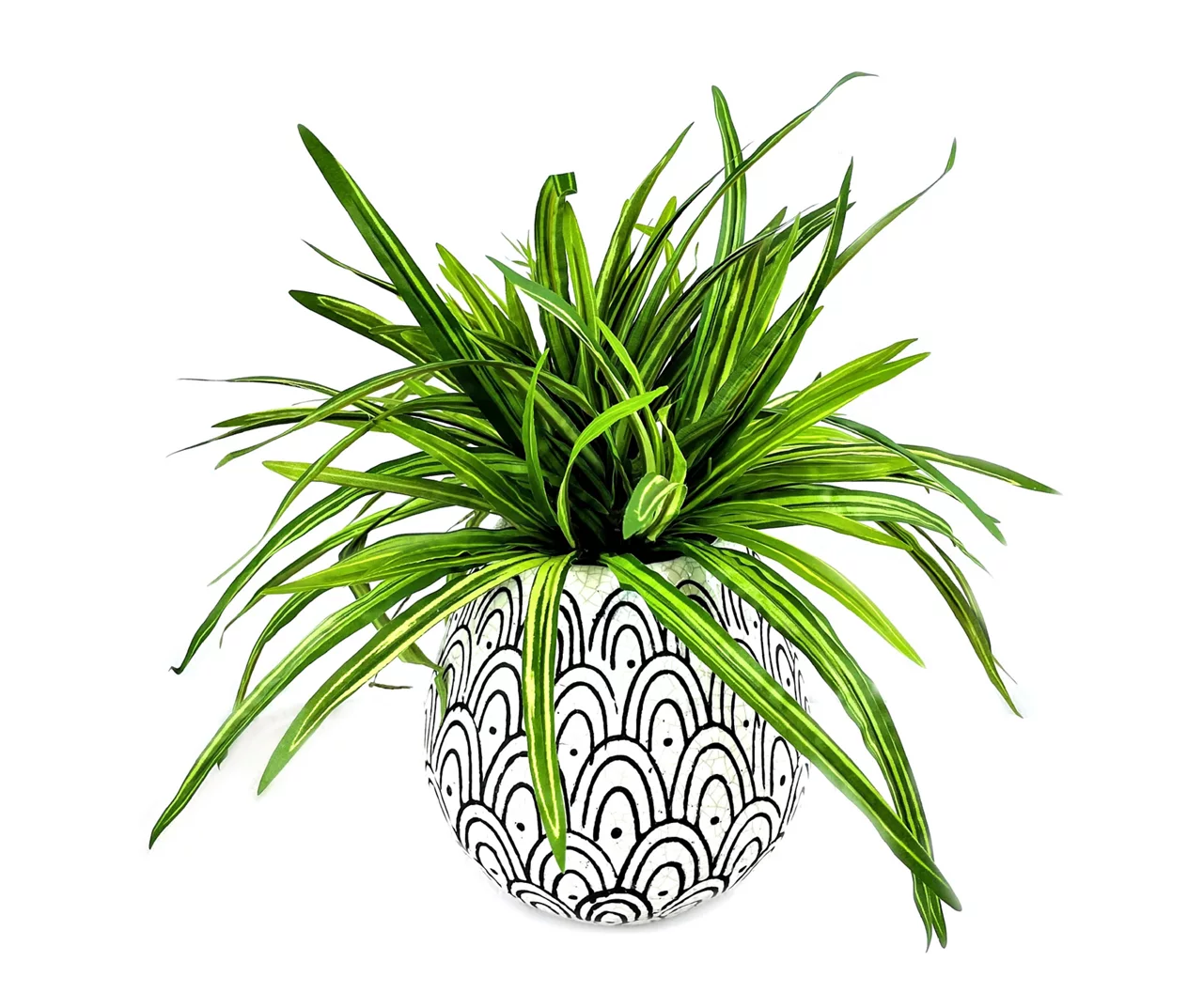 Enjoy year-round botanical vibrance with this lovely artificial arrangement housed in a black and white ceramic pot with an arch pattern for modern style. It’s a maintenance-free way to enjoy some greenery in an office, bedroom, kitchen or living room.