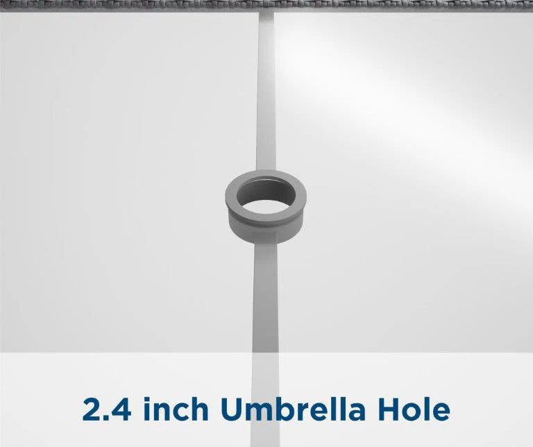 - Standard 2.4″ umbrella opening and cap will allow most standard outdoor umbrellas (umbrella sold separately)