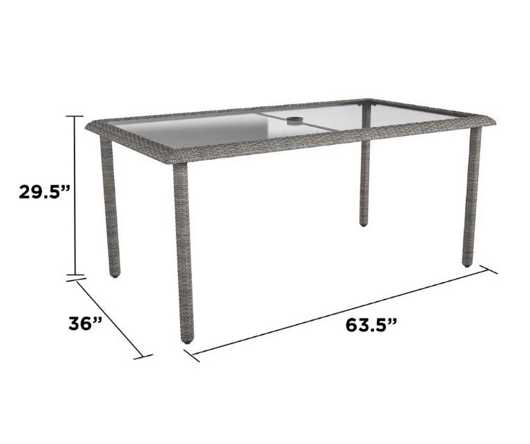 Cosco’s Lakewood Ranch steel and wicker patio dining table is a tempered glass-topped table large enough to fit up to six chairs. Durable and easy to clean, this table is constructed with a strong steel frame for extra support and durability. That frame is then wrapped in resilient resin wicker to create a stylish look. This table also includes an opening in the center, built to accommodate an umbrella (sold separately) for those bright, sunny days. Sit down and enjoy dinner with your friends with the Cosco Lakewood Ranch dining table.
