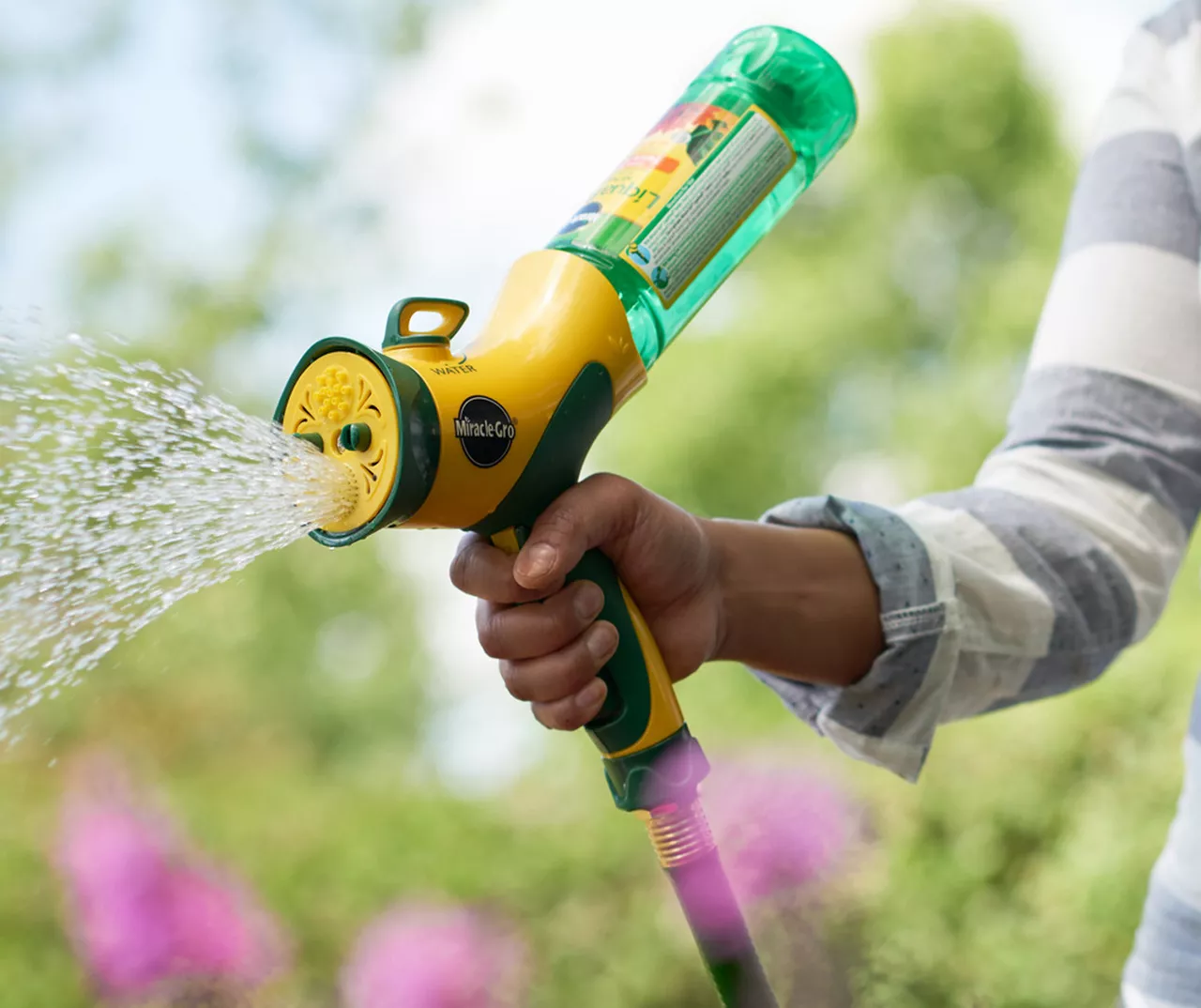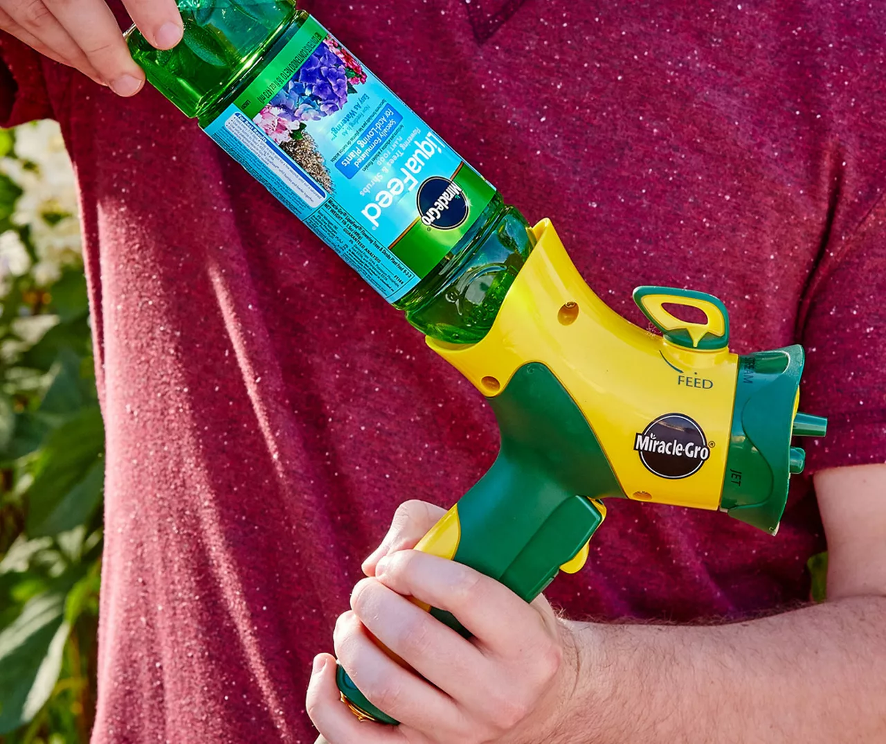 - Includes 2 bottles of Miracle-Gro LiquaFeed Bloom Booster, 1 bottle of LiquaFeed All Purpose Plant Food and a LiquaFeed garden feeder