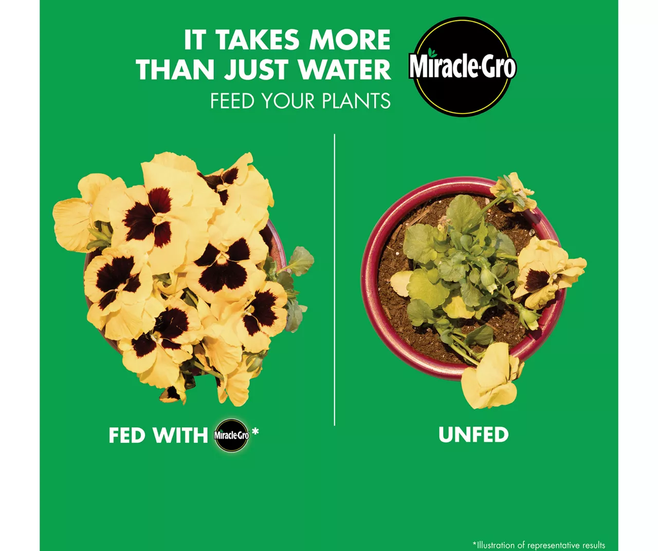- Miracle-Gro LiquaFeed Bloom Booster Flower Food promotes more blooms for greater color (compared to unfed plants)