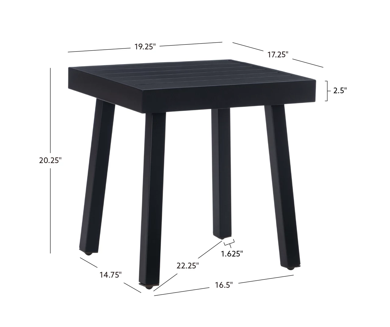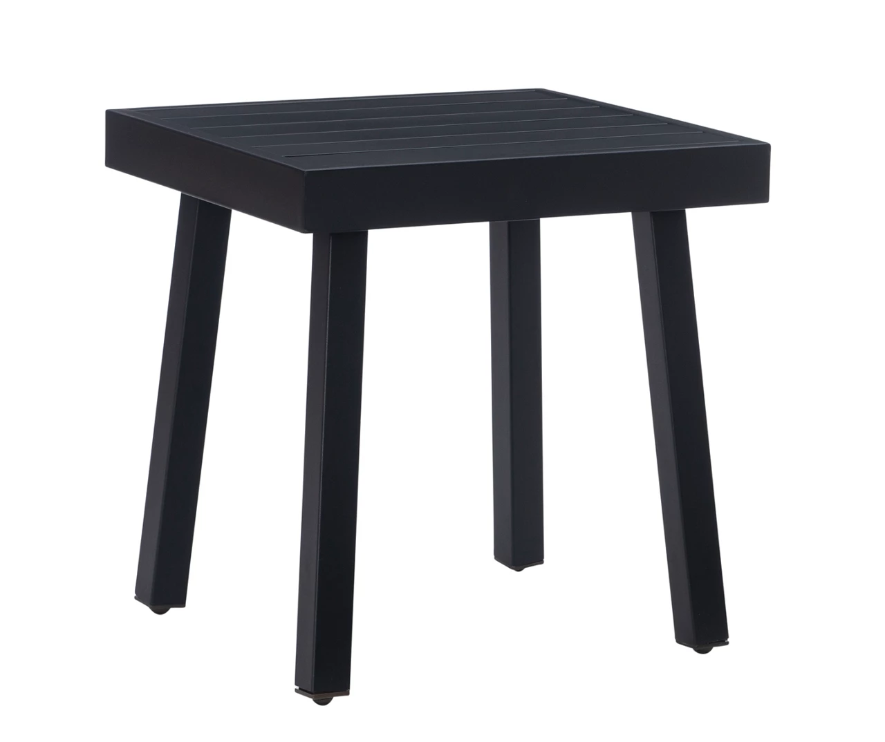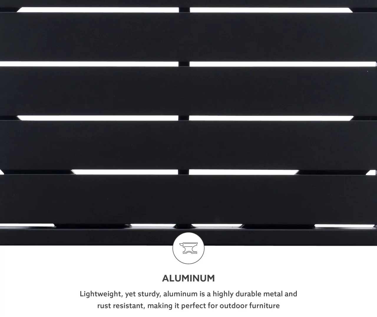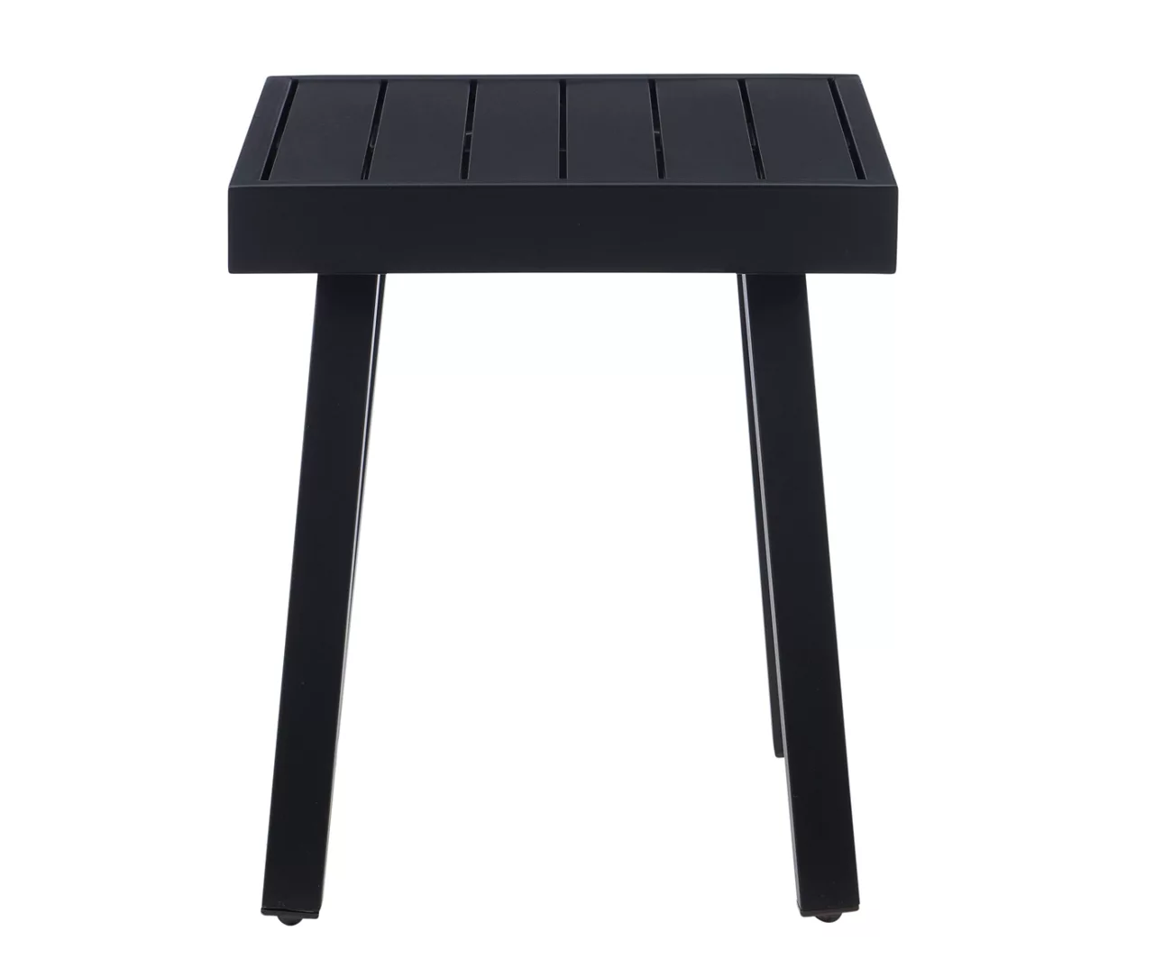 Modern, modest and reliable, this stylish side table will lend a hand when you need someone to hold your drink or elevate your outdoor dĆ©cor. The frame is constructed of aluminum for strength and stability while maintaining a lightweight design for easy transport. Moreover, there’s no need to stress about taking it in and out after each use, as the black powder-coated finish is rust resistant.
