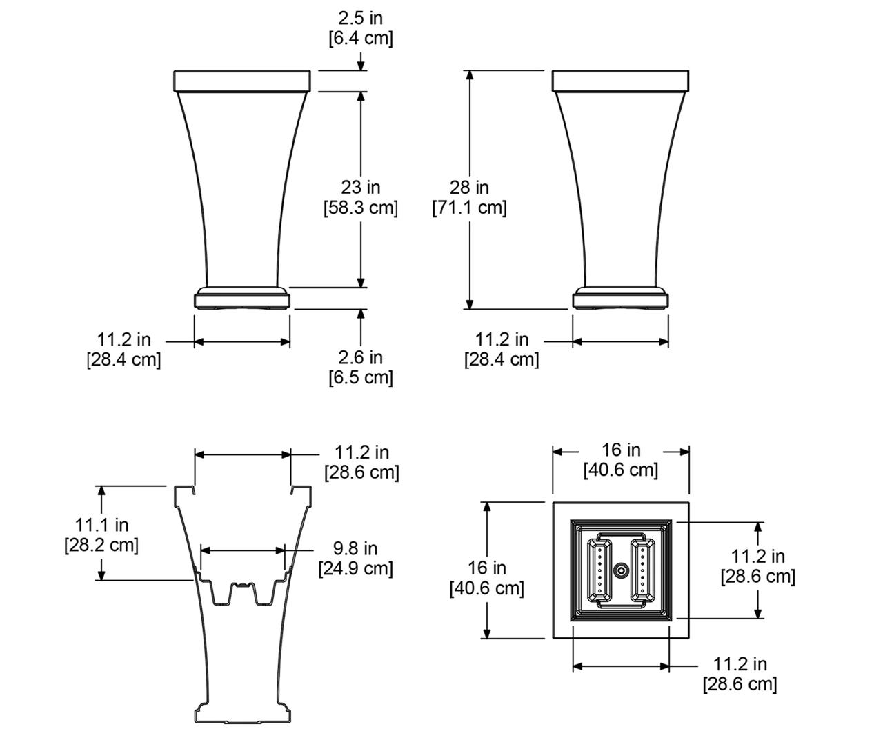 - Drainage holes can be pre-drilled by customer depending on desired use of the planter