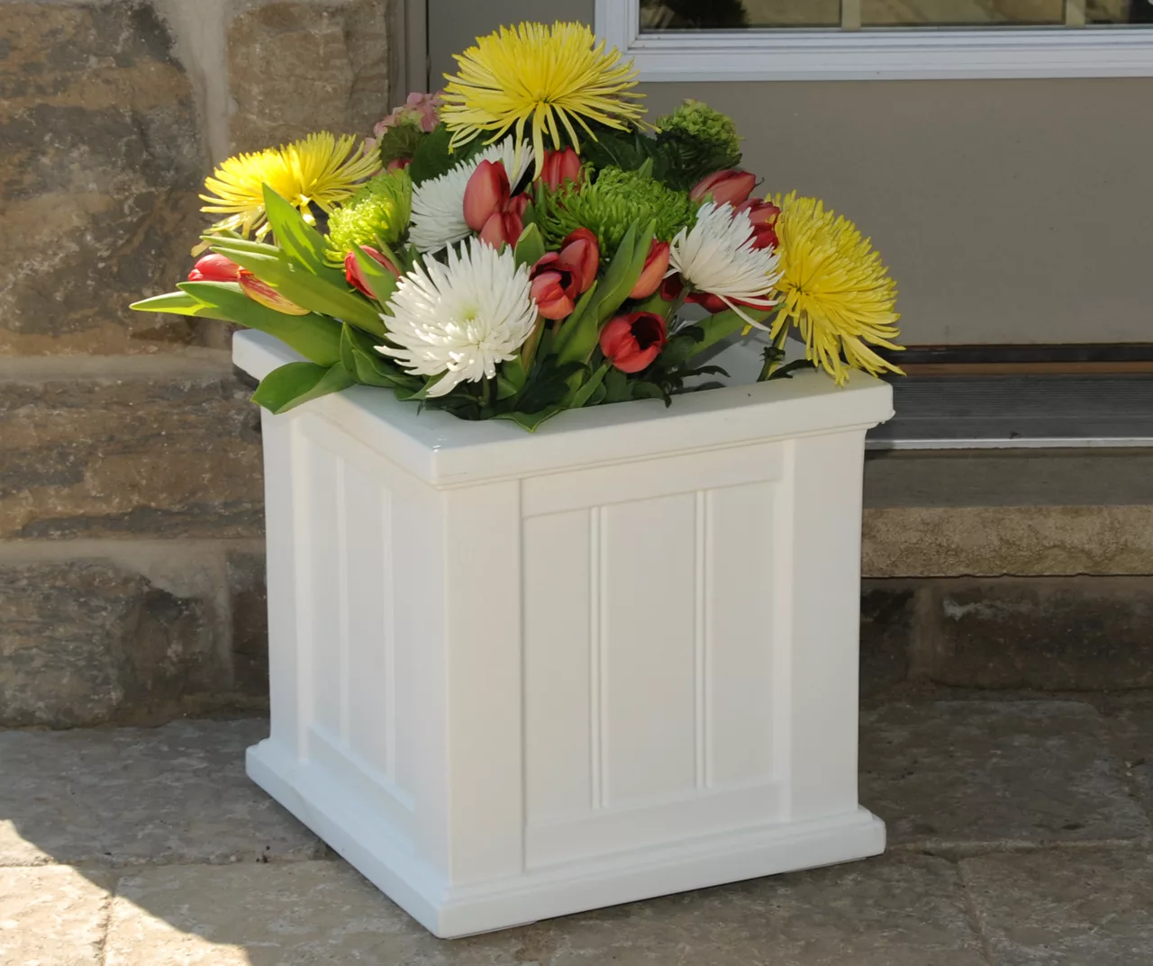 The Cape Cod Square Patio Planter features a bead board panel design with rich architectural details, truly transforming your patio space into a personal retreat.