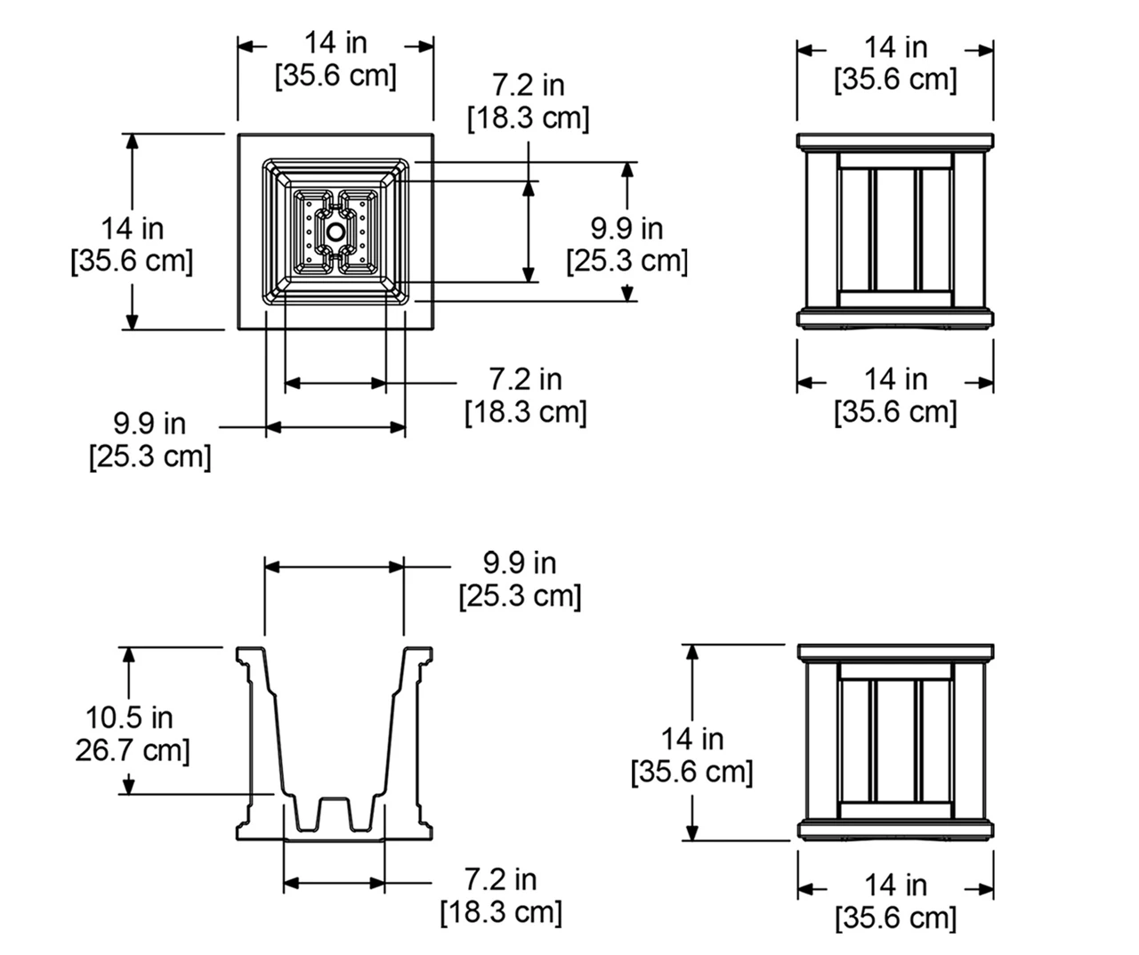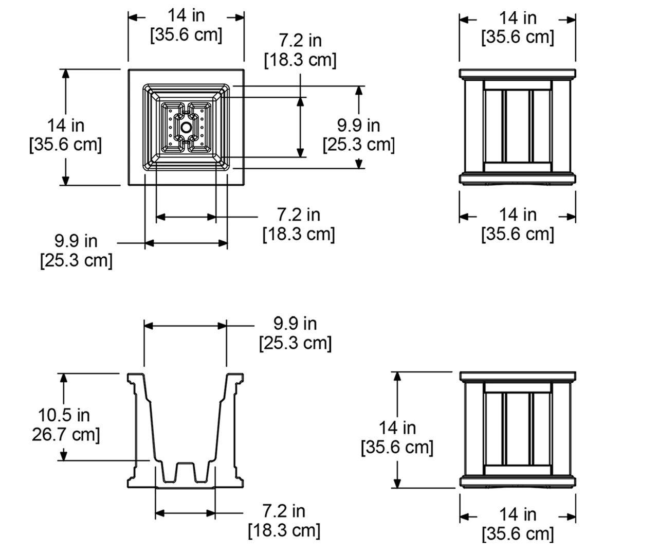 - Outside Dimensions: 14″L x 14″W x 14″H