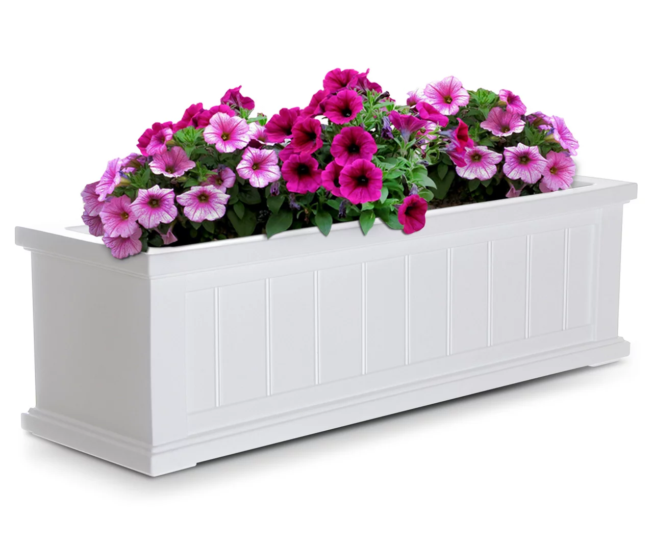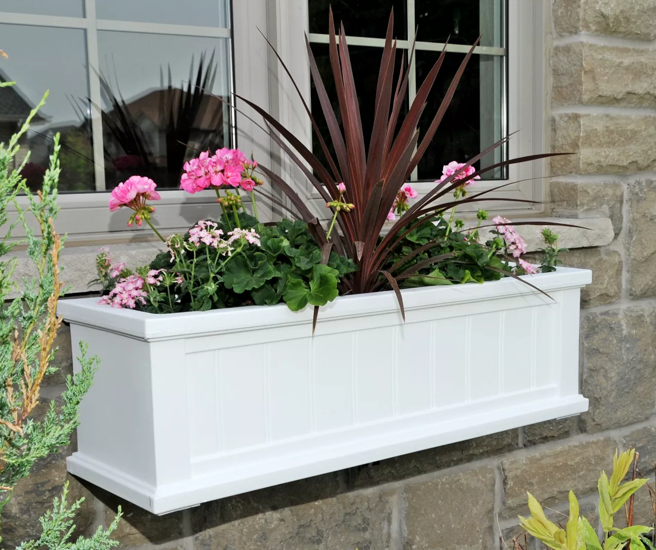Add a beautiful finishing touch under your windows or accent the edge of your patio with Mayne’s Cape Cod Window Box Planter.