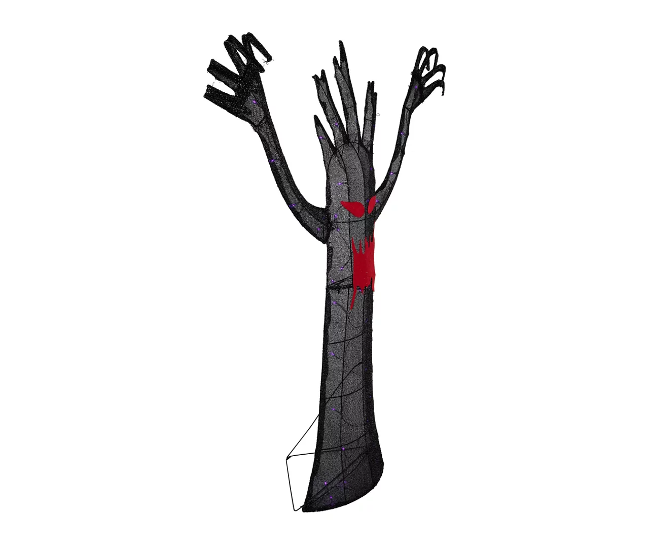 Terrify your trick-or-treating teens and toddlers with this creepy Halloween tree. The glittery fabric along with purple LED lights gives a soft, yet ominous glow. Perfect for your porch or yard.