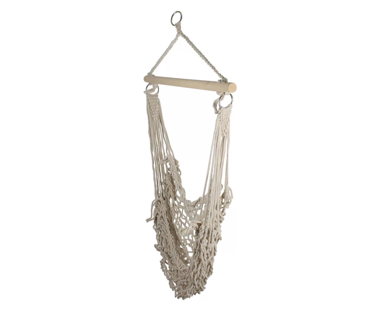 Relax in style with this portable hammock. A comfy addition to your outdoor space, this hammock has an ivory netted pattern and a wooden bar to hang. This fun hammock is ease to transport and hangs wherever you venture!