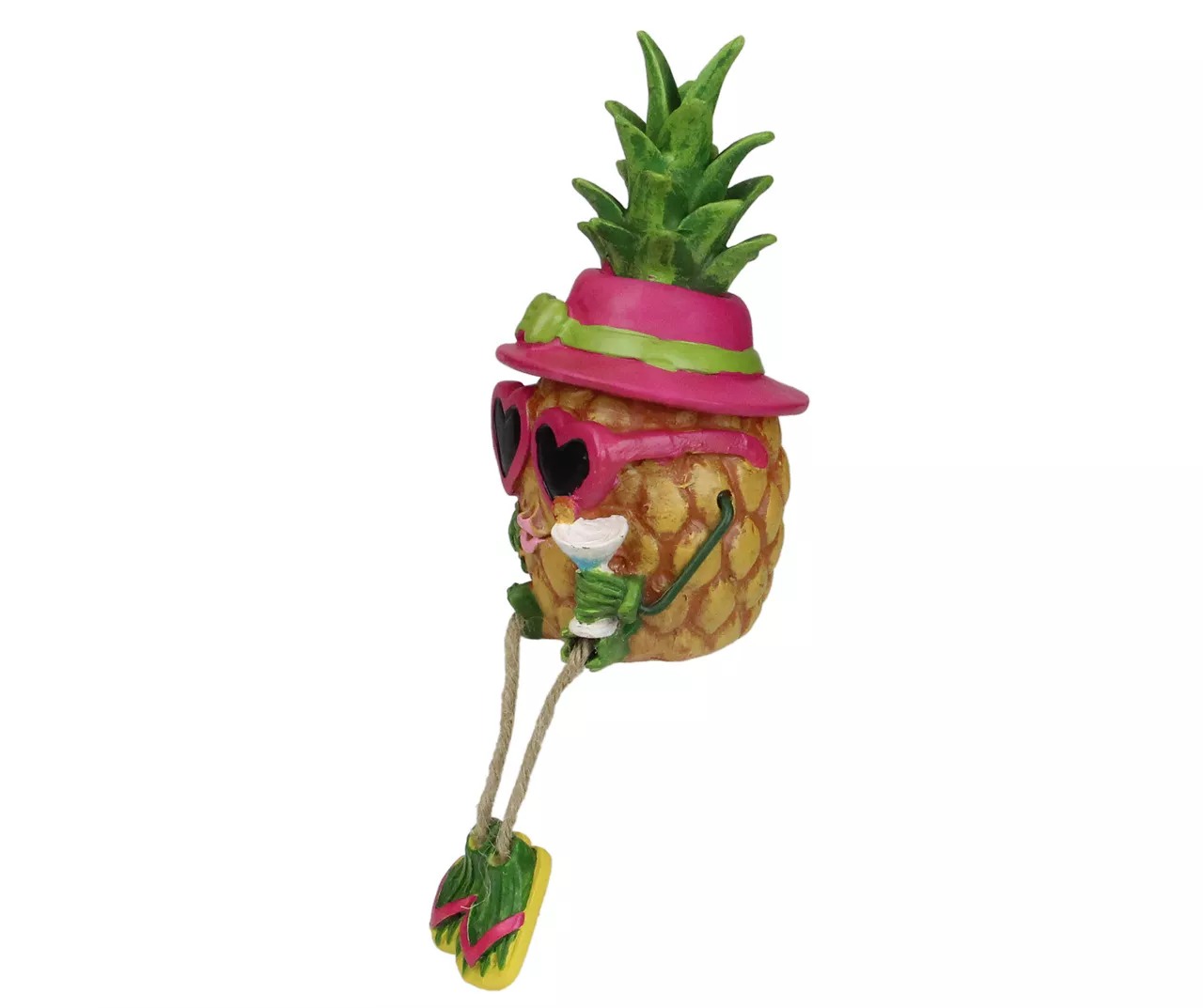 Add some sweetness to your home or garden décor with this fruity figure! This festive pineapple is featured with a cocktail in hand and wears pink sunglasses. Perfect for perching on top of a garden stone, fireplace mantel or kitchen shelf.