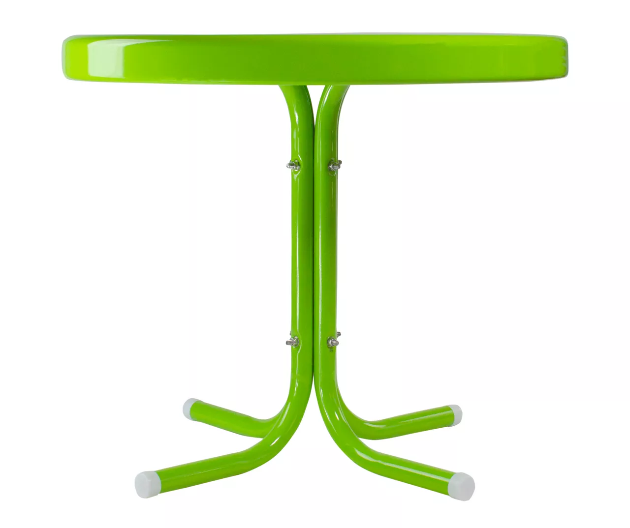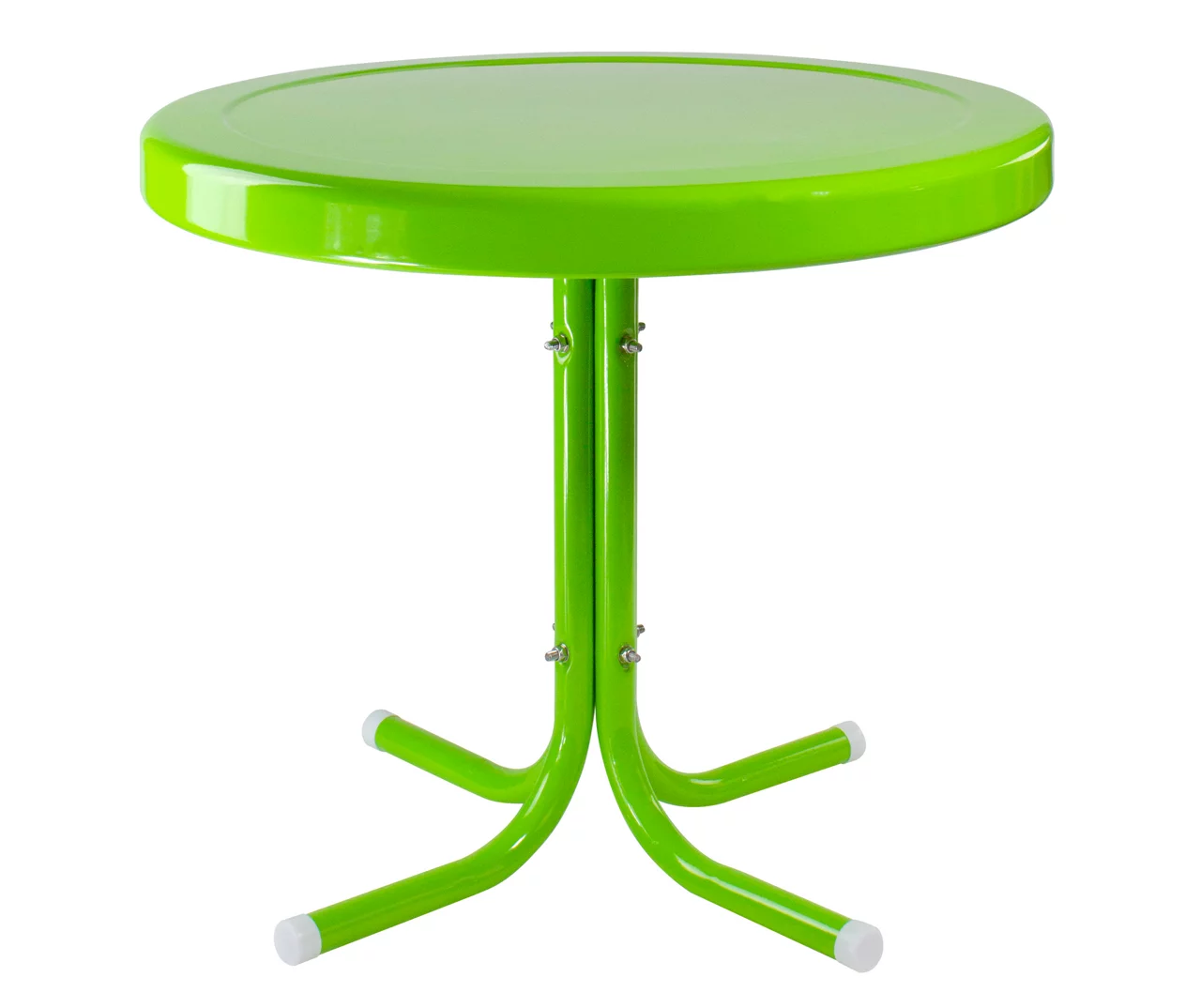 Keep drinks and items nearby in retro style using this outdoor side table! The long-lasting enamel paint and finish allow for many years of great usage without the worry of the table rusting or peeling. Adds the perfect pop of your color to your yard.