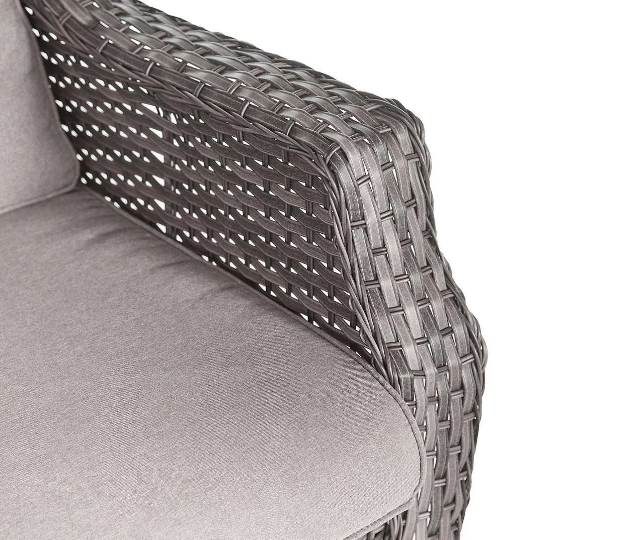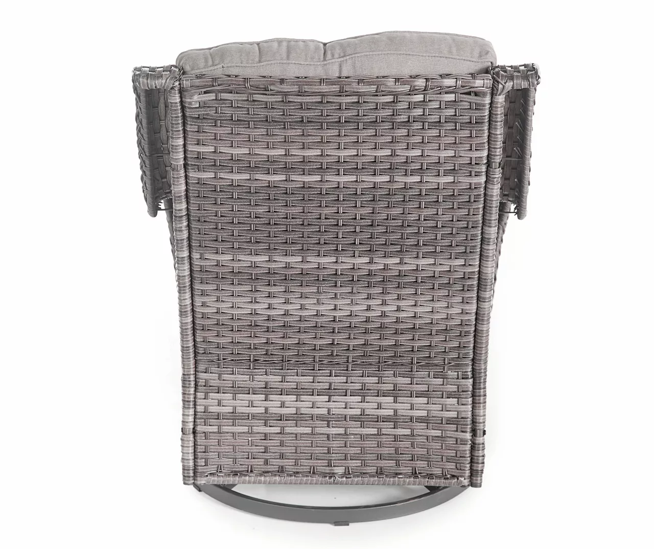 Swivel and glide in the sunshine relaxing on this Rockbridge seating set from Real Living. Each piece features a powder-coated steel frame wrapped in handwoven all-weather wicker. As you sink into the neutral weather-resistant cushions, the tempered glass side table keeps items and drinks within convenient reach.