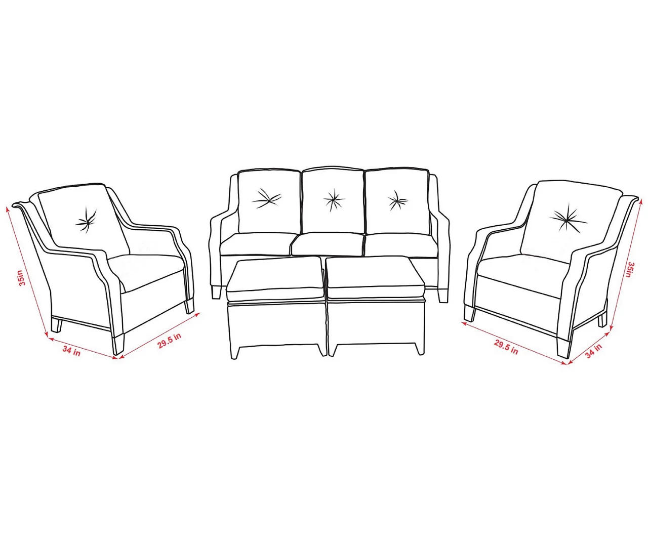 - Product dimensions: 29.5″L x 34.0″W x 35.0″H