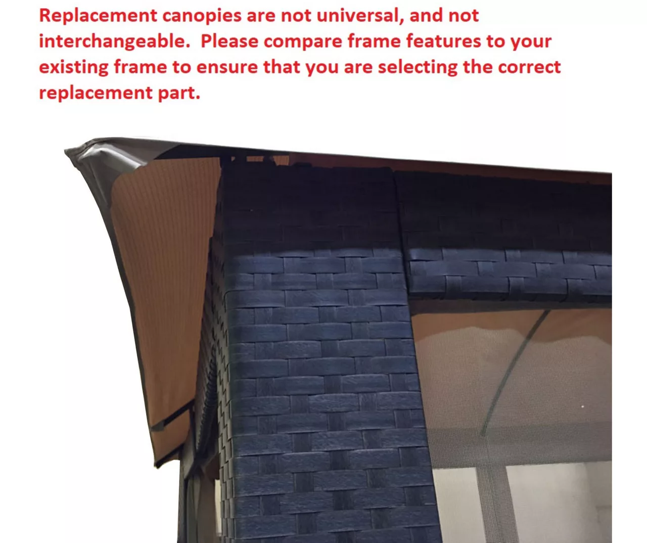 - This replacement canopy top cover will not fit any other gazebo model