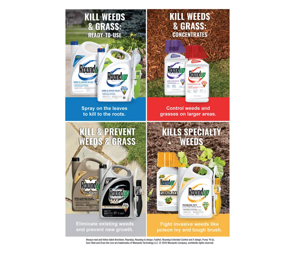 Kill existing weeds and grasses down to the root with Roundup Ready-To-Use Weed and Grass Killer III with the Sure Shot Wand! The formula is ideal for use in and around vegetable gardens, flower beds, tree rings and mulched beds, as well as on cracks in driveways, walkways and patios. The protective shield fits over weeds to contain spray, so you can be sure you are killing annoying weeds and not your plants and the improved wand extends 2 feet for a more convenient, targeted control. The Ready-To-Use Weed and Grass Killer III is rainproof in just 10 minutes—and you get visible results in 3 hours. Kill weeds faster with Roundup.