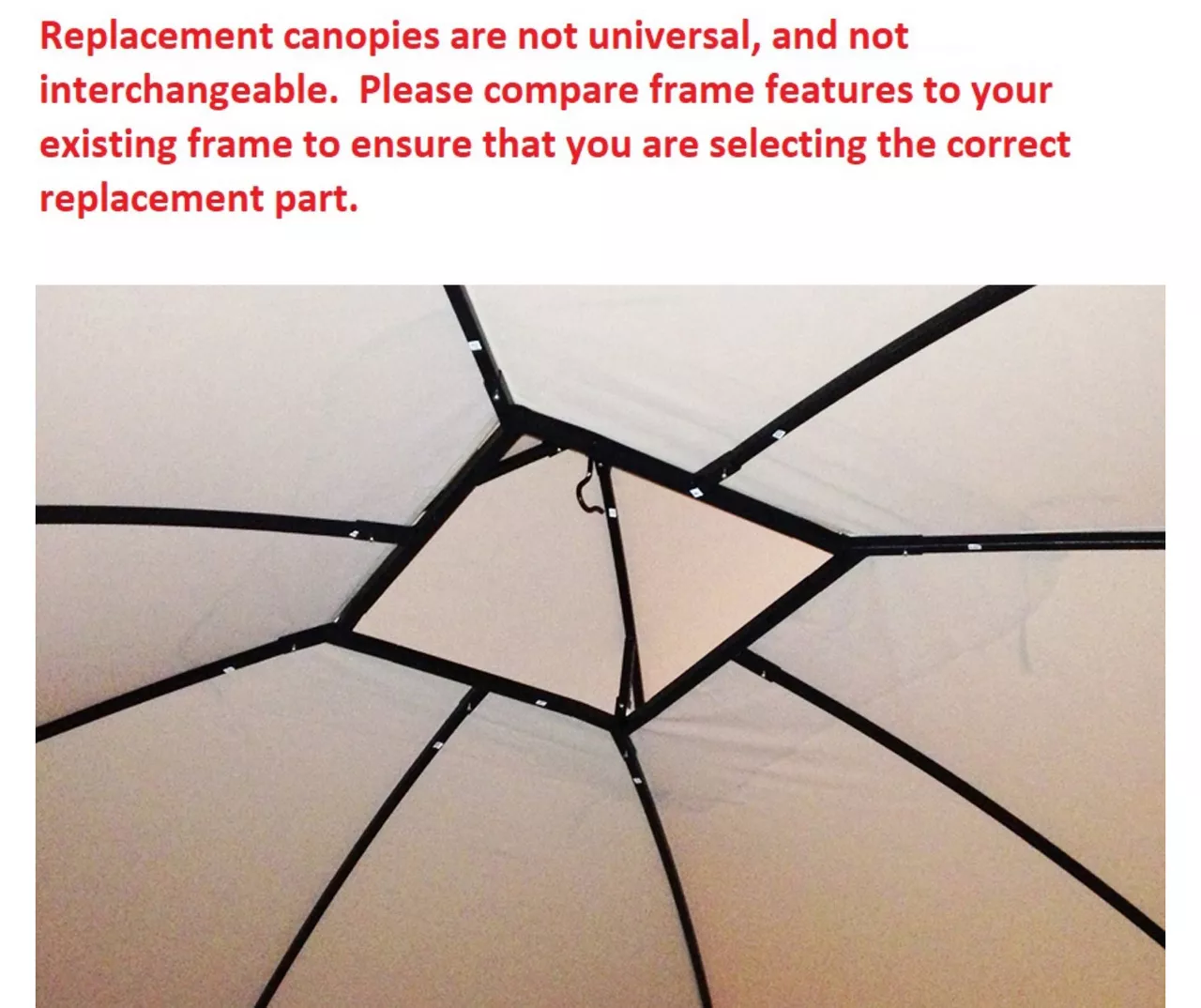 - Replacement canopy top cover only. Other accessories and metal frame parts not included