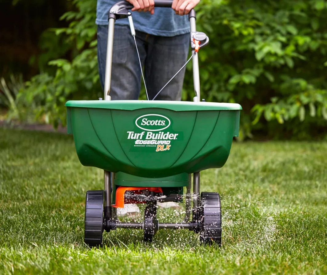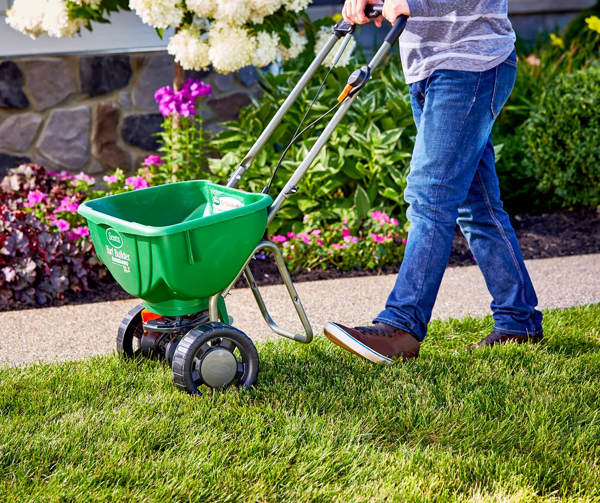 Spread product efficiently and effectively with Scotts Turf Builder EdgeGuard DLX broadcast spreader. Equipped with Scotts exclusive EdgeGuard technology, you can trust that the product you spread will be spread accurately. You can even control the panel’s precision rate setting to deliver more accurate coverage on up to 15,000 square feet. The Scotts Turf Builder EdgeGuard DLX broadcast spreader comes calibrated and ready to use, so you can get started right away.