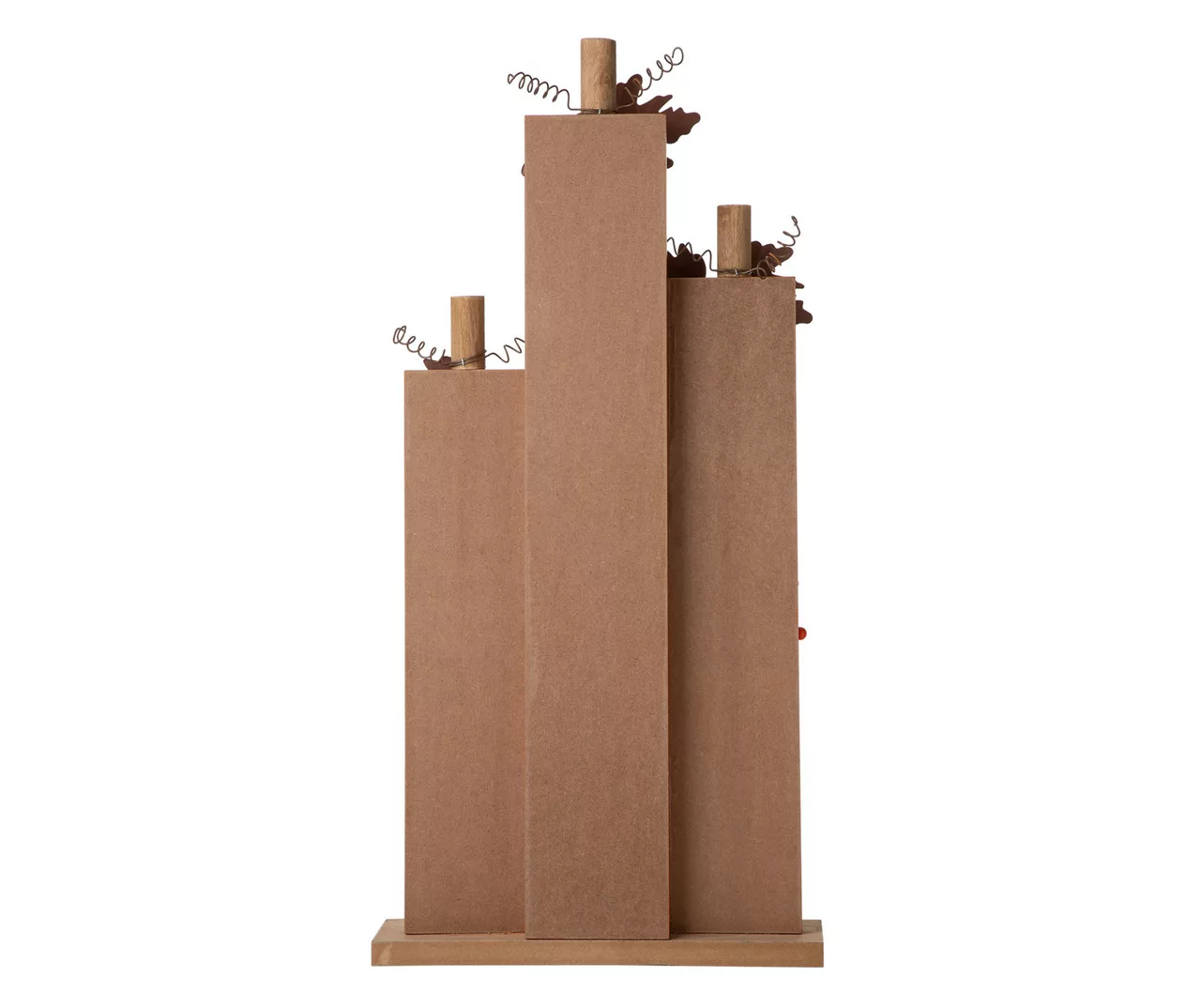 If you’re looking for a gorgeous addition to your porch or entrance, look no further than this lovely wooden pumpkin display. The light-up wreath, festive orange pumpkins and sweet “welcome” message creates a fun, lighthearted atmosphere in any space. Perfect for decorating an entryway or living space.