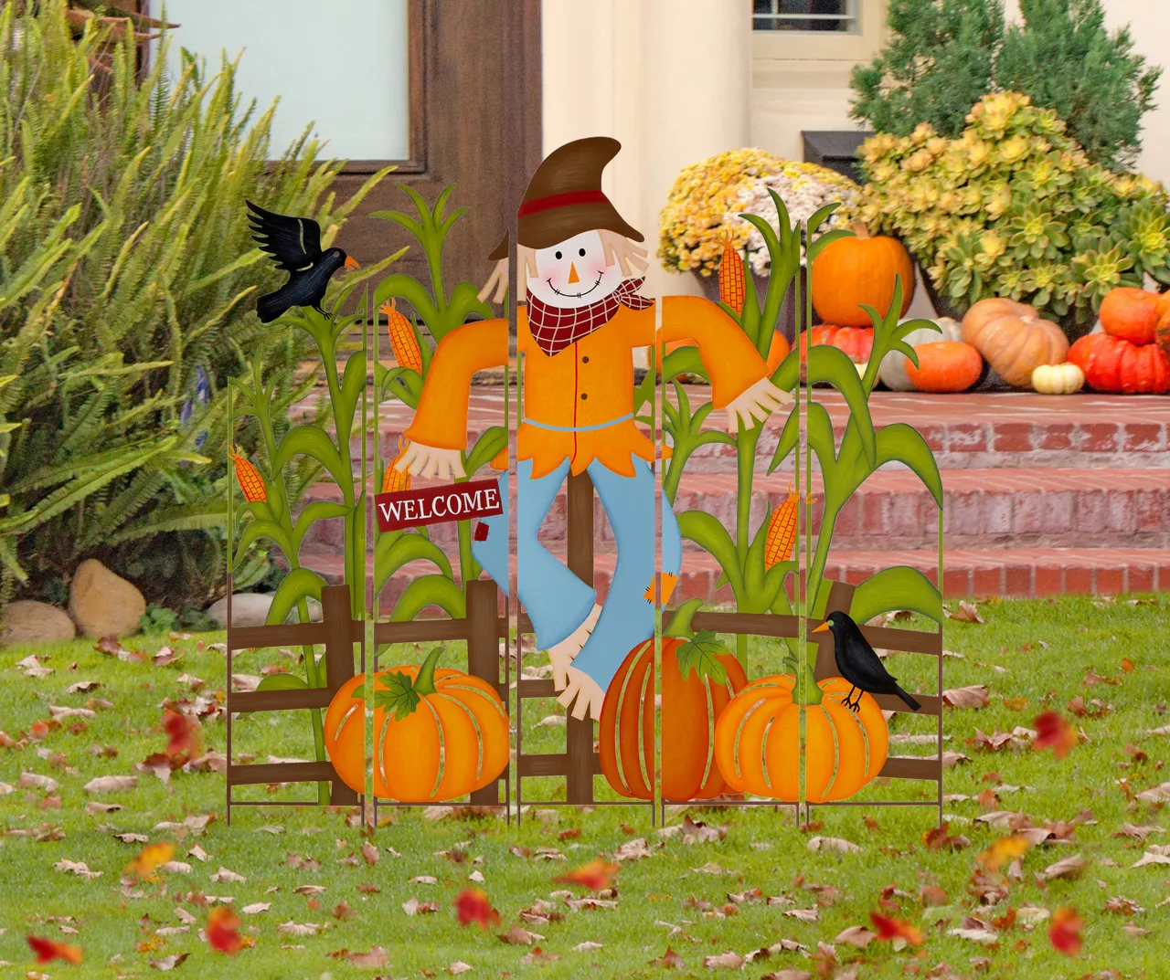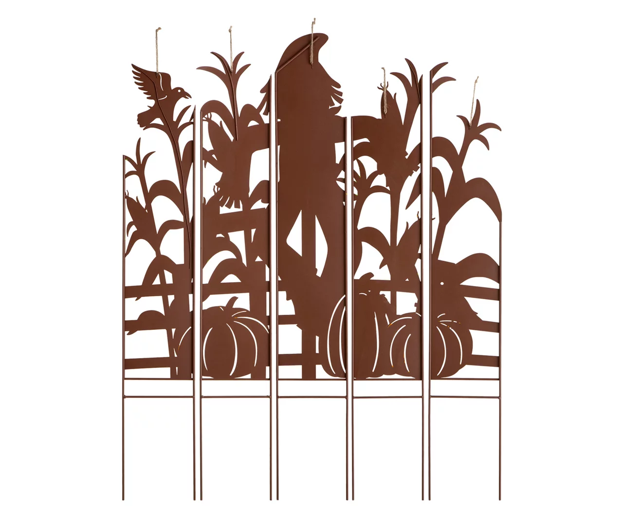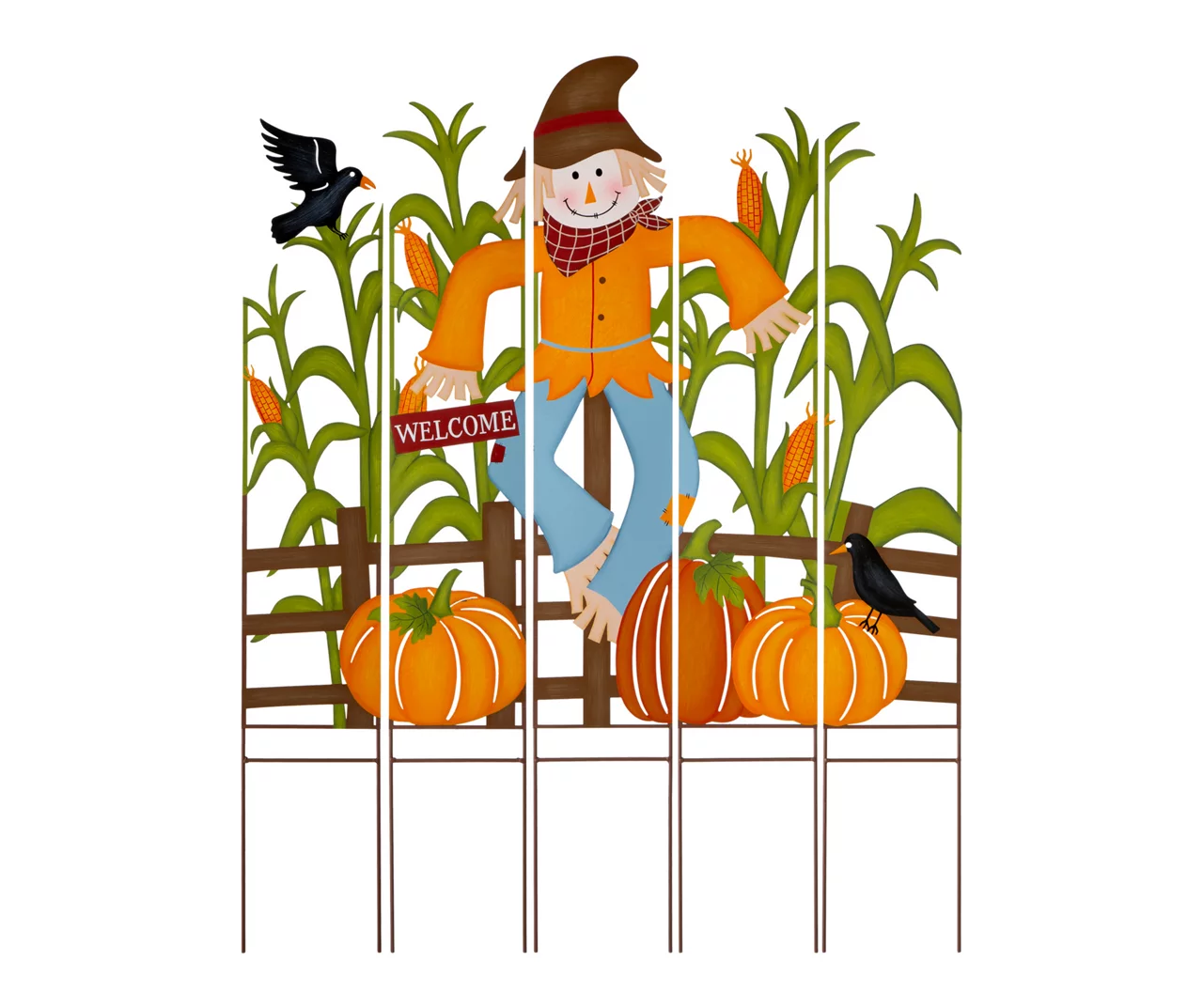 Enhance your outdoor décor with this colorful and fun stake set from Glitzhome. The charming design of a scarecrow and corn adds a bit of harvest flair to any home, making it a great addition to your garden or yard.