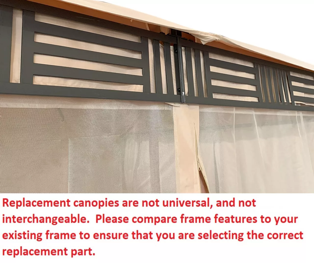 - This replacement canopy top cover and side mosquito netting will not fit any other gazebo frame