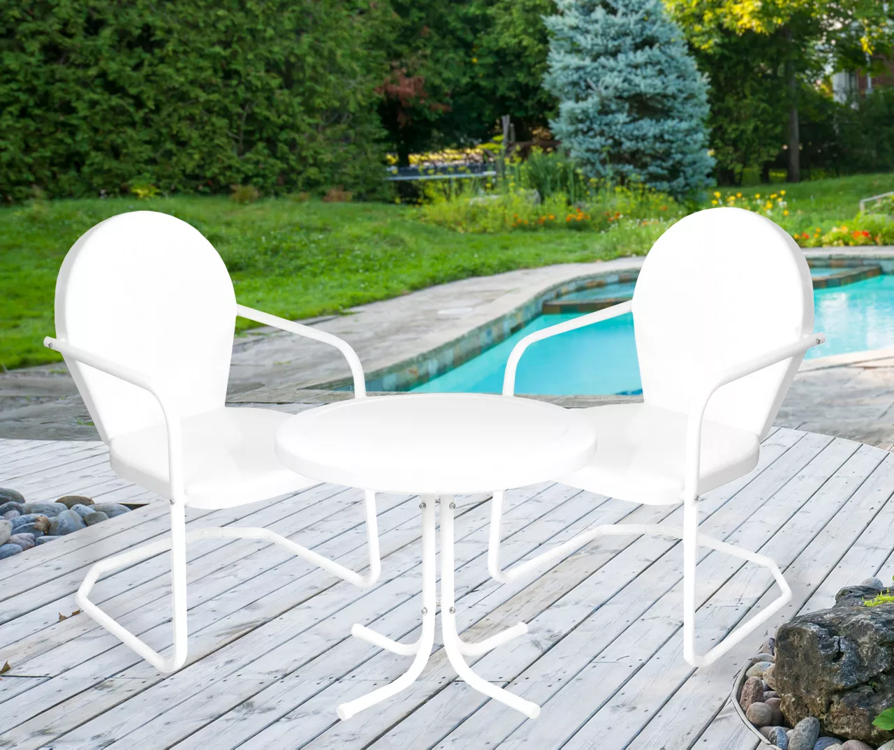Just like those that your parents and grandparents had growing up. With its weather-resistant powder-coated finish, you will have years to enjoy this classic set. Perfect for enjoying a glass of wine on the patio with family and friends or a good book by yourself.