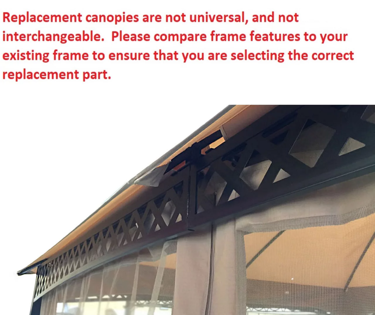 - This replacement canopy top cover will not fit any other gazebo model